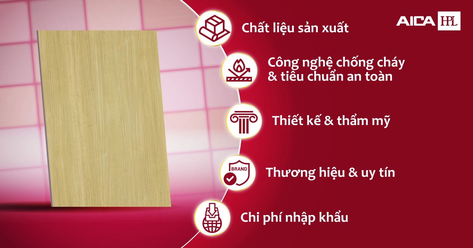 Hiện nay có nhiều thương hiệu tấm ốp tường chống cháy với mức giá dao động từ vài trăm nghìn đến vài triệu mỗi tấm, khiến người tiêu dùng băn khoăn. Sự chênh lệch giá chủ yếu do khác biệt về nguyên liệu, công nghệ sản xuất, tiêu chuẩn kiểm định và chính sách phân phối. Vì vậy, việc chọn đúng sản phẩm chất lượng thực sự không hề dễ dàng. AICA HPL sẽ phân tích rõ nguyên nhân khiến giá các tấm ốp chống cháy khác nhau giữa các thương hiệu.